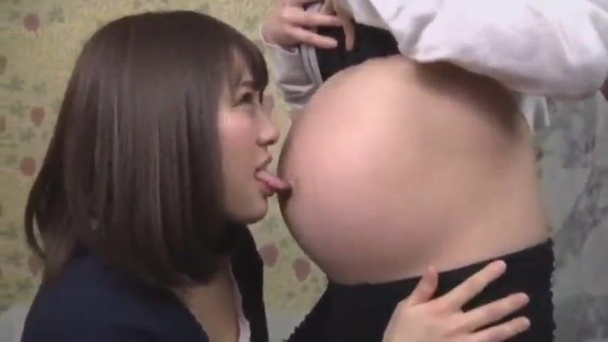 japanese lesbian licking her pregnant girlfriend's belly button
